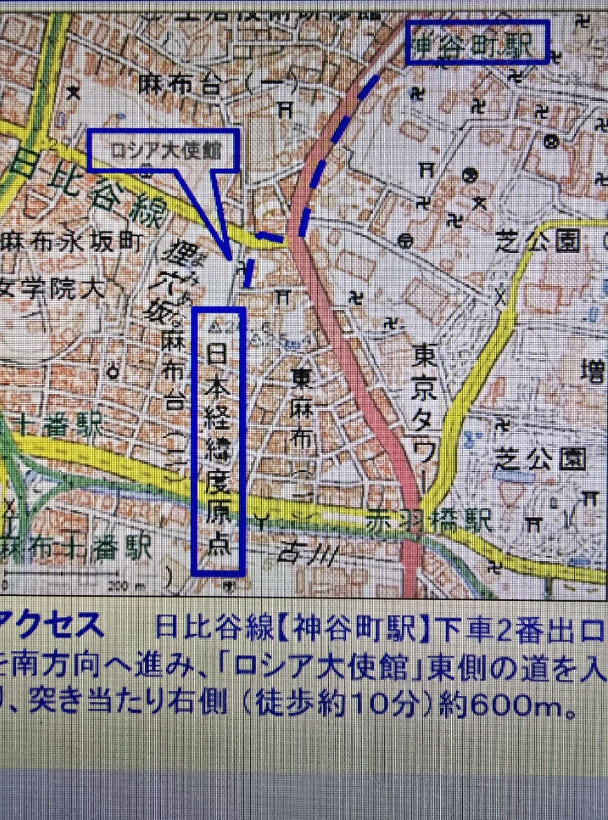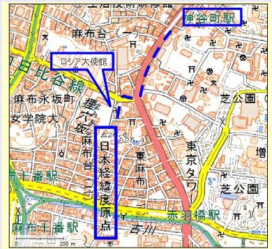国際的な隣人関係:ロシア大使館とアメリカンクラブと日本経緯度原点