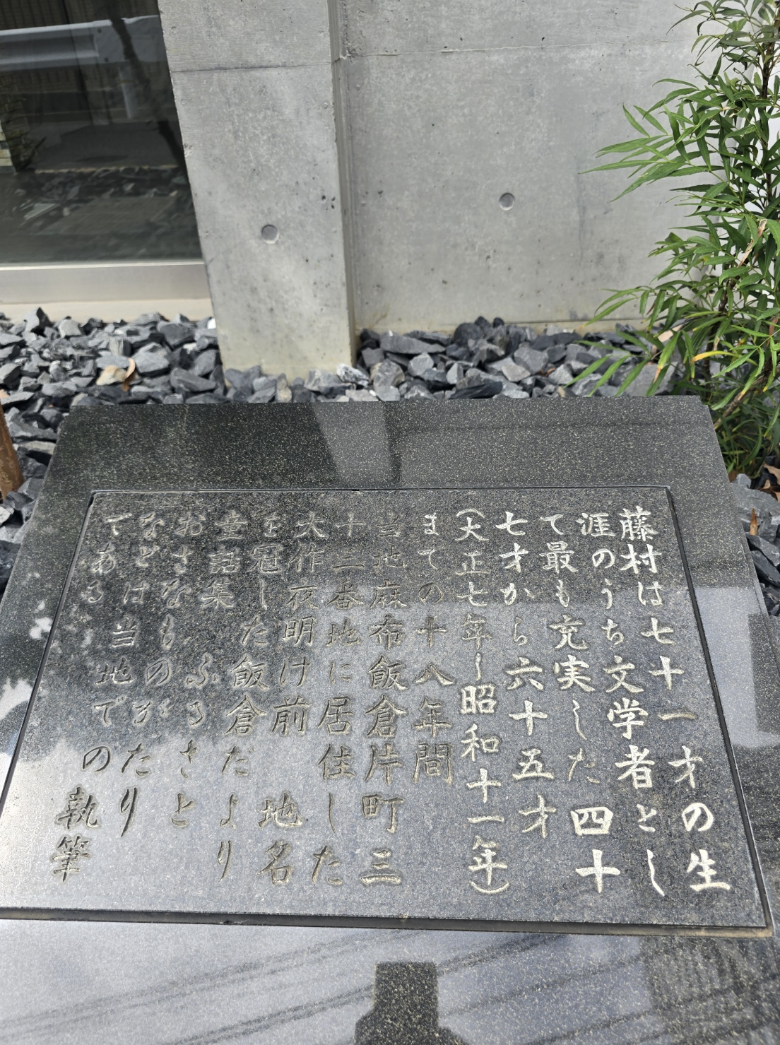 植木坂下にはこんな碑も建てられておりました。島崎藤村さんもこの地にお住まいだったとのことです。